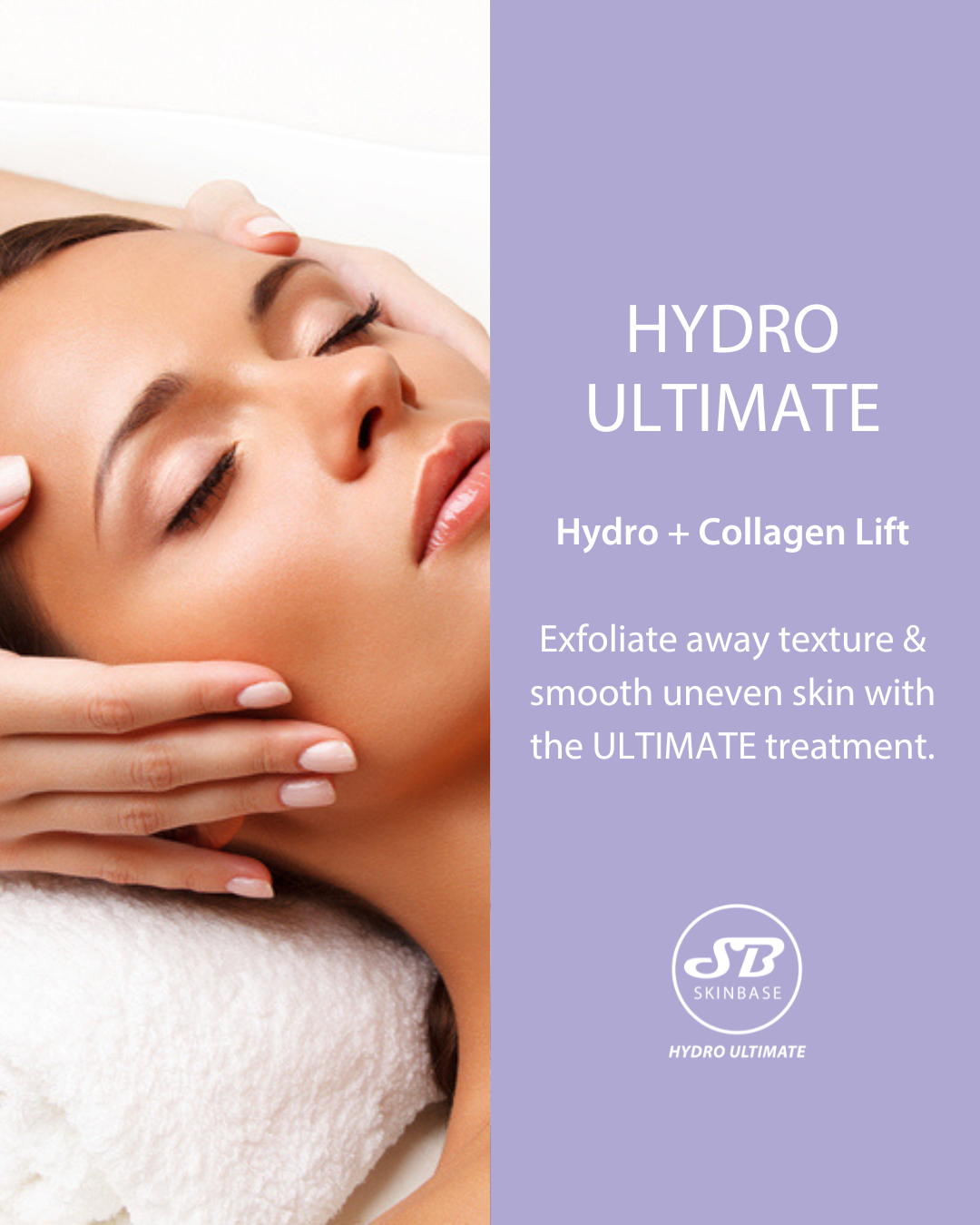 Full Collagen Lift Facial completed with a Hydro SkinBase prescription serum applied with vacuum action to help penetrate the skin more effectively.