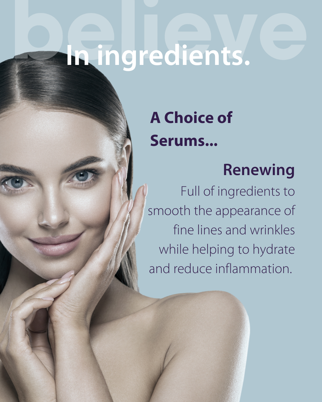 The Renewing Serum is perfect if you have visible signs of ageing, such as fine lines and wrinkles, that you want to minimise the appearance of, it contains a blend of beneficial ingredients for mature skin. Such as:2